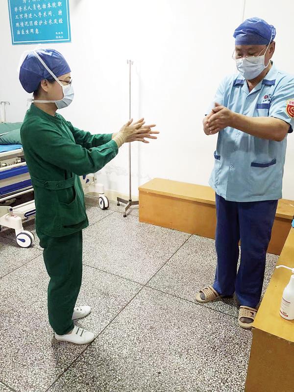 仙游縣政協委員、仙游縣總醫院手術室護士長黃杰在一線指導保潔人員做好防控。