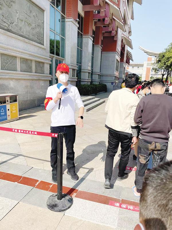 市政協委員、莆田市融藝堂工藝品有限公司藝術總監、總經理李輝加入黃石工藝美術城志愿者隊伍,維持現場秩序和指導群眾填報信息等工作。