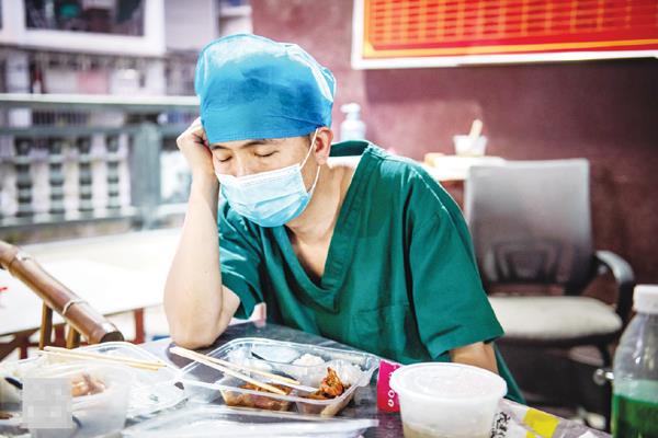 3月19日晚,仙游縣鯉南鎮鐘云府核酸檢測點,仙游縣政協常委、仙安社區衛生院陳建友,在吃盒飯時,因為實在太疲憊,邊吃邊睡著了。自疫情暴發后,他第一時間參加社區核酸采樣,直到18日凌晨才回家,第二天早上6點開始,又連續在一線工作十幾個小時。
