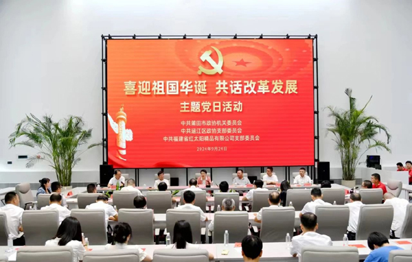 在喜迎新中國(guó)成立75周年、喜慶人民政協(xié)成立75周年之際,9月24日,市政協(xié)機(jī)關(guān)和涵江區(qū)政協(xié)機(jī)關(guān)、福建省紅太陽(yáng)精品有限公司聯(lián)合舉行“喜迎祖國(guó)華誕 共話改革發(fā)展”主題黨日活動(dòng)。市政協(xié)黨組書記、主席沈萌芽,黨組成員、副主席林玉瑞、張志宏,黨組成員陳四海等參加。
