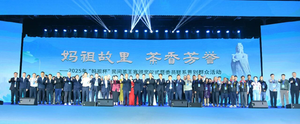 10月28日,在媽祖羽化升天1038周年來臨之際,以“媽祖故里 茶香芳譽”為主題的2025年“媽祖杯”民間茶王賽頒獎儀式暨委員聯(lián)系界別群眾活動在莆田市湄洲島舉行。 十三屆省政協(xié)副主席余軍,十二屆省政協(xié)副主席、海峽兩岸茶業(yè)交流協(xié)會會長林鐘樂,市長戴龍成,市政協(xié)主席沈萌芽,省政協(xié)提案委主任胡忠昭,省人大常委會原委員、中華媽祖文化交流協(xié)會顧問林光大,市人大常委會原一級巡視員、市海峽茶業(yè)交流協(xié)會會長沈金水,市政協(xié)副主席黃華、林玉瑞、張宗賢等出席,并為獲獎者頒獎。 作為八屆市政協(xié)2022年創(chuàng)辦的特色品牌活動,“媽祖杯”民間茶王賽始終以弘揚媽祖文化與中華茶文化為核心,依托政協(xié)委員聯(lián)系界別群眾的紐帶作用,畫出兩岸情感共鳴、發(fā)展共識的最大同心圓,為莆田綠色高質量發(fā)展先行市建設與兩岸融合發(fā)展持續(xù)凝聚人心和力量。