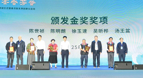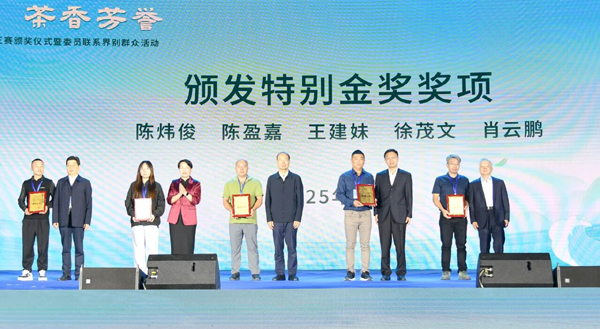 頒獎環(huán)節(jié)中,匠心獎、金獎、特別金獎和茶王獎四大獎項依次揭曉。本屆賽事分武夷巖茶、臺灣高山烏龍茶兩大品類,歷經(jīng)數(shù)月嚴苛評審產(chǎn)生結果。