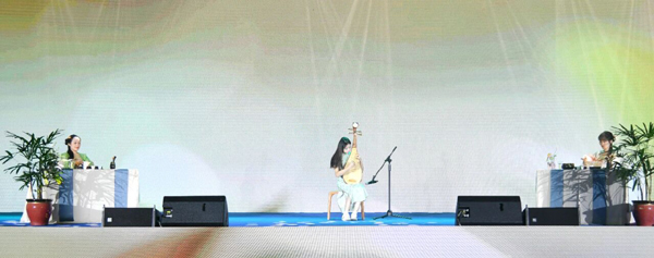 林荔、鄭麗琴、歐菲婭進行茶藝琵琶表演《琵琶曲》